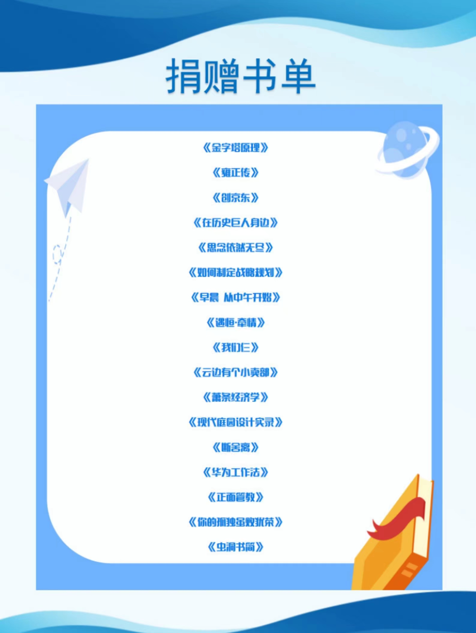 ▲以上為部分捐贈(zèng)書單展示